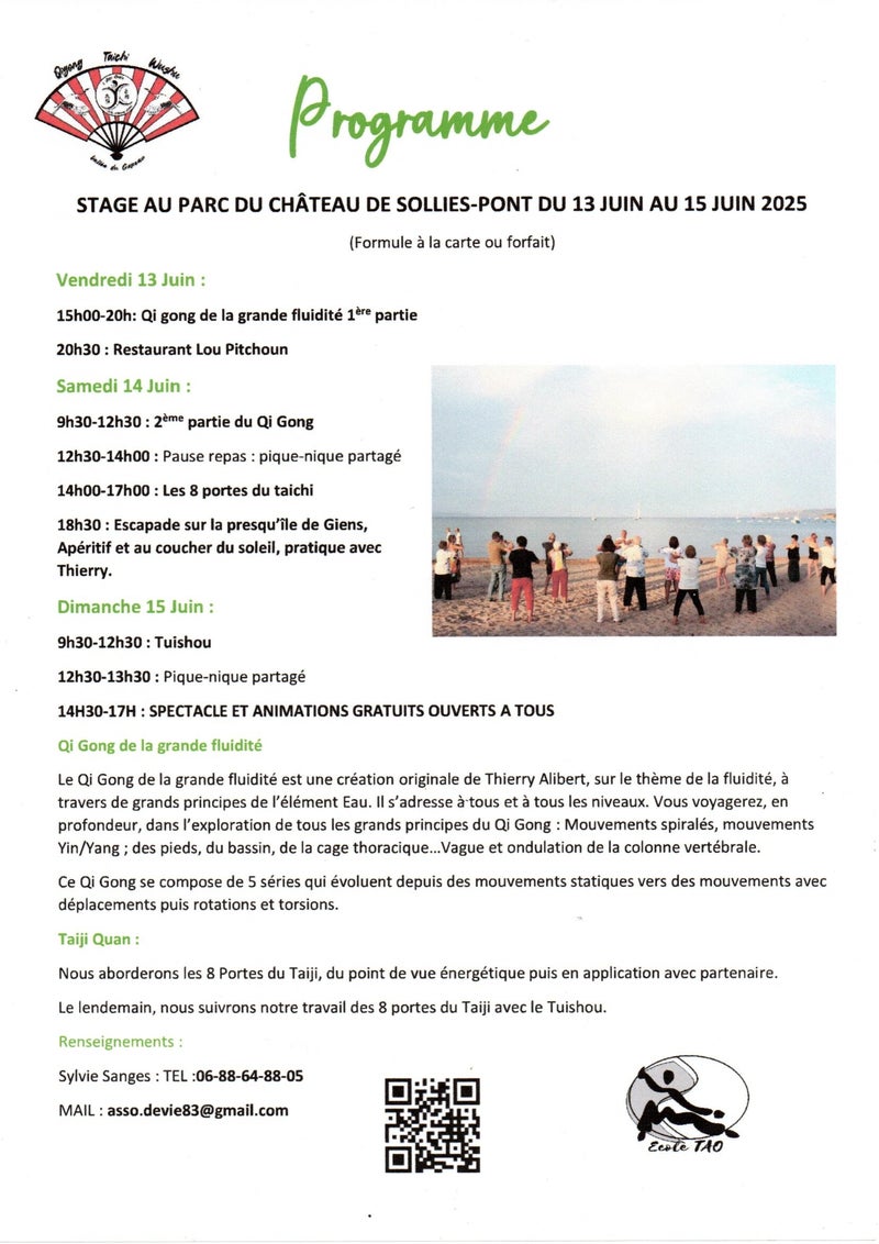 3 au 5 avril 2026 : Stage Qi Gong/ Taiji avec Thierry Alibert de l'école du TAO